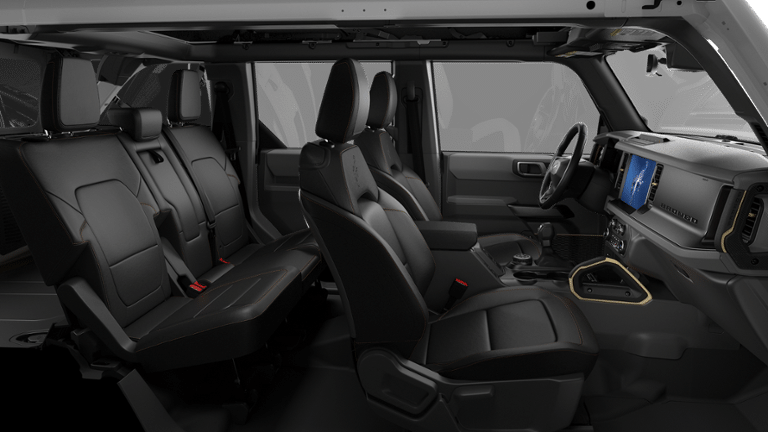 Pulse Brake and Poly Steel Protection Installed. Product Pricing Not Included, **Value Priced - No Hassle Buying**, 2-Door Intelligent Access with Lock/Unlock, 360-Degree Camera, 4-Wheel Disc Brakes, 4.7 Final Drive Ratio, ABS brakes, Adaptive Cruise Control, Air Conditioning, AM/FM radio: SiriusXM with 360L, AM/FM Stereo, Ambient Footwell Lighting, Auto High-Beam Headlamps, Auto High-beam Headlights, Auto-dimming Rear-View mirror, BLIS Blind Spot Information System, Brake assist, Compass, Connected Navigation, Delay-off headlights, Driver and Front Passenger Illuminated Sliding Visor Vanity Mirrors, Driver door bin, Driver vanity mirror, Dual front impact airbags, Dual front side impact airbags, Dual Smart Charging USB Ports, Dual-Zone Electronic Automatic Temperature Control, Electronic Stability Control, Emergency communication system: 911 Assist, Equipment Group 334A Lux Package, Evasive Steering Assist, Exterior Parking Camera Rear, Ford Connectivity Package (1-Year Included), Front anti-roll bar, Front Bucket Seats, Front Center Armrest, Front fog lights, Front License Plate Bracket, Front Parking Sensors, Front reading lights, Front Row Heated Seats, Front Row Top Panels and Door Storage Bags, Front Stabilizer Disconnect, Front wheel independent suspension, Fully automatic headlights, Hard Top Sound Deadening Headliner, Heated door mirrors, Heated front seats, Heated Steering Wheel, High Clearance Suspension, Illuminated entry, Information on Demand Panel, Integrated roll-over protection, Lane-Keeping System, Leather Shift Knob, Leather-Trimmed/Vinyl Bucket Seats, Low tire pressure warning, Marine Grade Vinyl Heated Bucket Seats, Occupant sensing airbag, Outside temperature display, Overhead airbag, Overhead console, Panic alarm, Passenger door bin, Passenger vanity mirror, Position-Sensitive Bilstein Shock Absorbers, Power door mirrors, Power steering, Power windows, Pre-Collision Assist with Automatic Emergency Braking, Pro Power Onboard - 400W, Radio data system, Radio: B&O Sound System by Bang and Olufsen, Raptor-Style Running Board, Rear Parking Sensors, Rear-View Camera, Rear-Window Defroster and Washer, Remote keyless entry, Sasquatch Package, Security system, Shadow Black Painted Hard Top, Sideview Mirrors, SiriusXM with 360L, Speed control, Split folding rear seat, Steering wheel mounted audio controls, SYNC 4, Tachometer, Telescoping steering wheel, Tilt steering wheel, Traction control, Trailer Tow Package, Trip computer, Variably intermittent wipers, Voltmeter, Wheels: 17 Matte Black Al